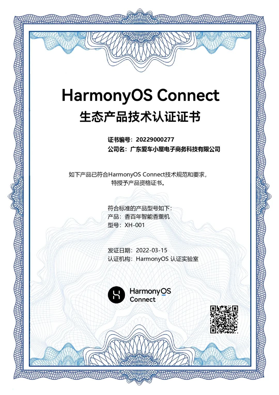 2022年3月15日,于一年一度的315消費者權益日當天,香百年傳來喜訊!香百年智能香薰機已通過HarmonyOS Connect技術認證!值得一提的是,香百年智能香薰機是全球首款也是目前唯一的一款通過HarmonyOS Connect認證的智能香薰機。