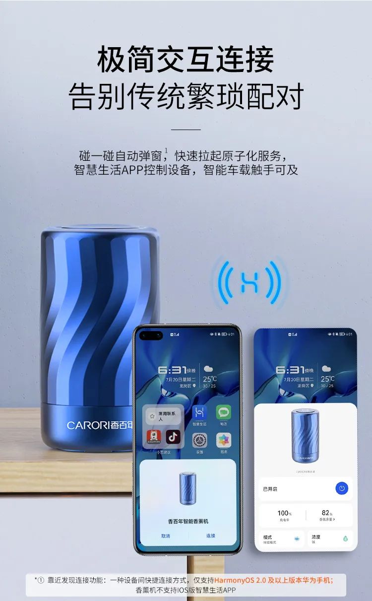 香百年智能香薰機后續版本升級支持HarmonyOS Connect。未來,香百年也將與HarmonyOS Connect及眾多生態伙伴一起創造更多可能,共同開啟智慧車載創新生態!